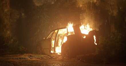 We saw a photo get burnt in a cutscene but we went back and found a hole leading to another door that was like the others which require stones or skulls to open it.